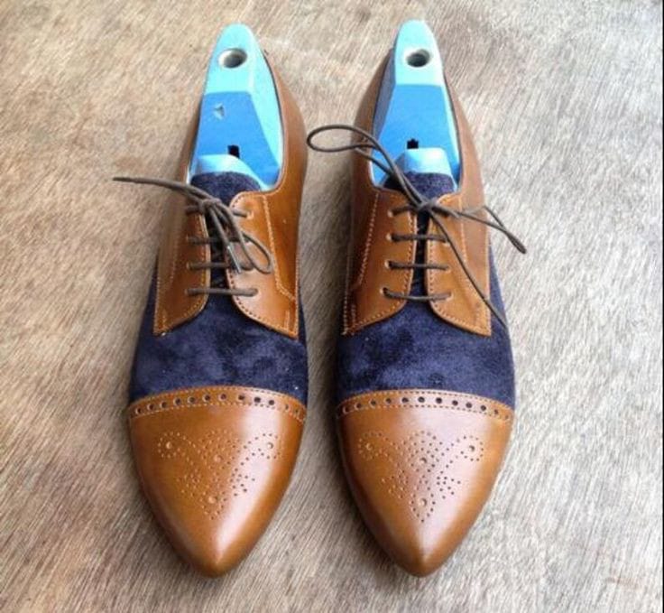 Oxford Navy Blue Suede Brown Shoes for Men Dress Shoes