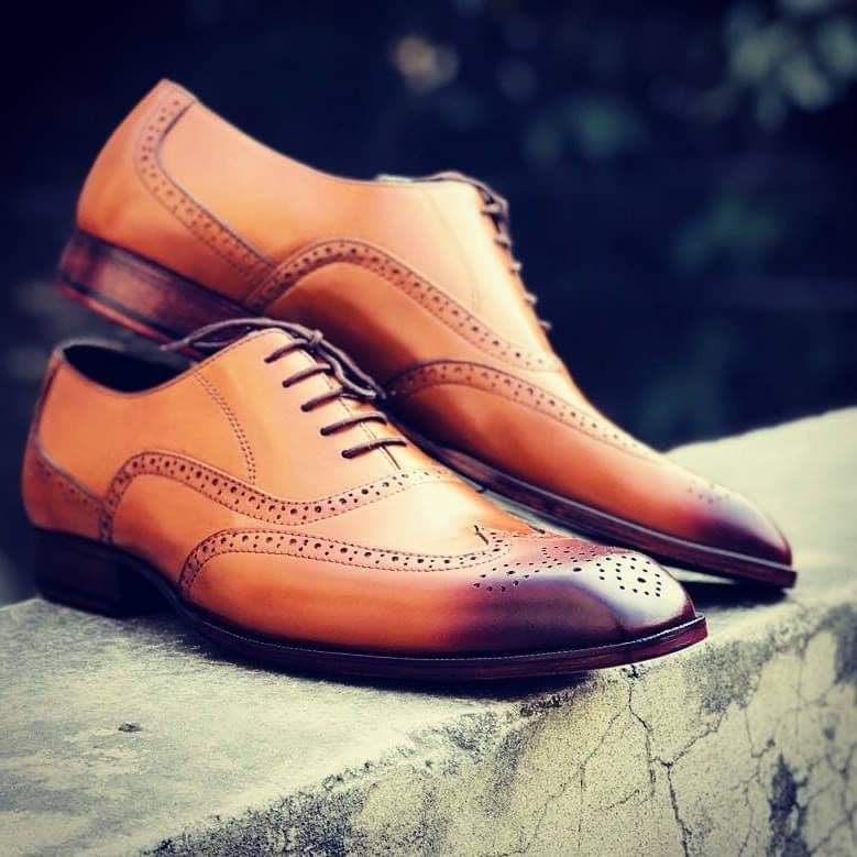 Tan Brown Burnished Toe Brogue Shoes for Men Dress Shoes