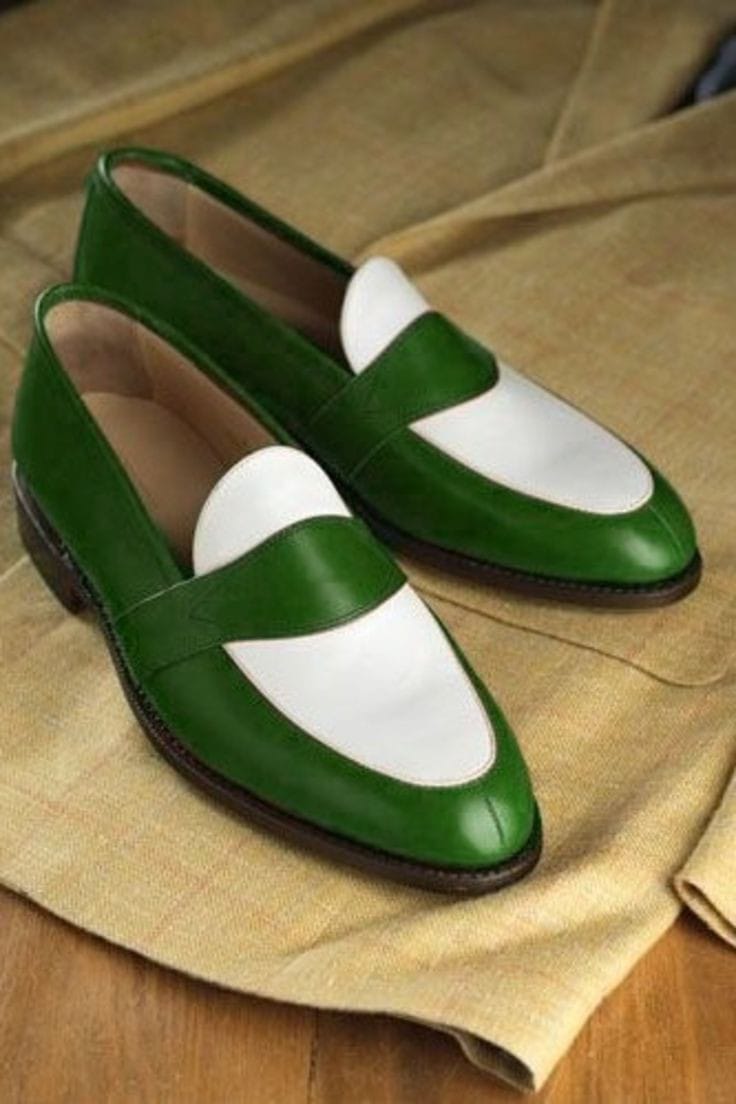 Men's Green and White Slip-on Loafers Moccasins Fashion Shoes