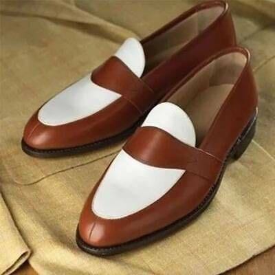 Men's Brown and White Slip-on Loafers Moccasins Fashion Shoes