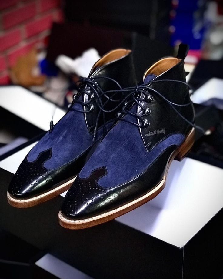 Black Leather Navy Blue Suede Chukka Boots