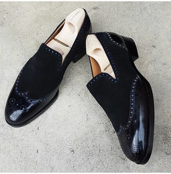 Black Patent Leather Suede Brogue Shoes for Mens Fashion Shoes