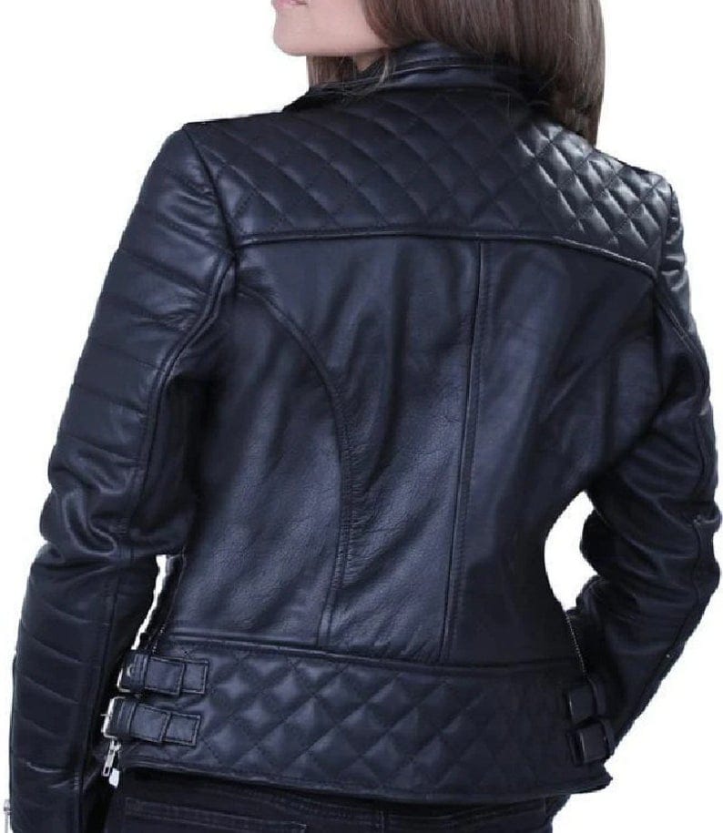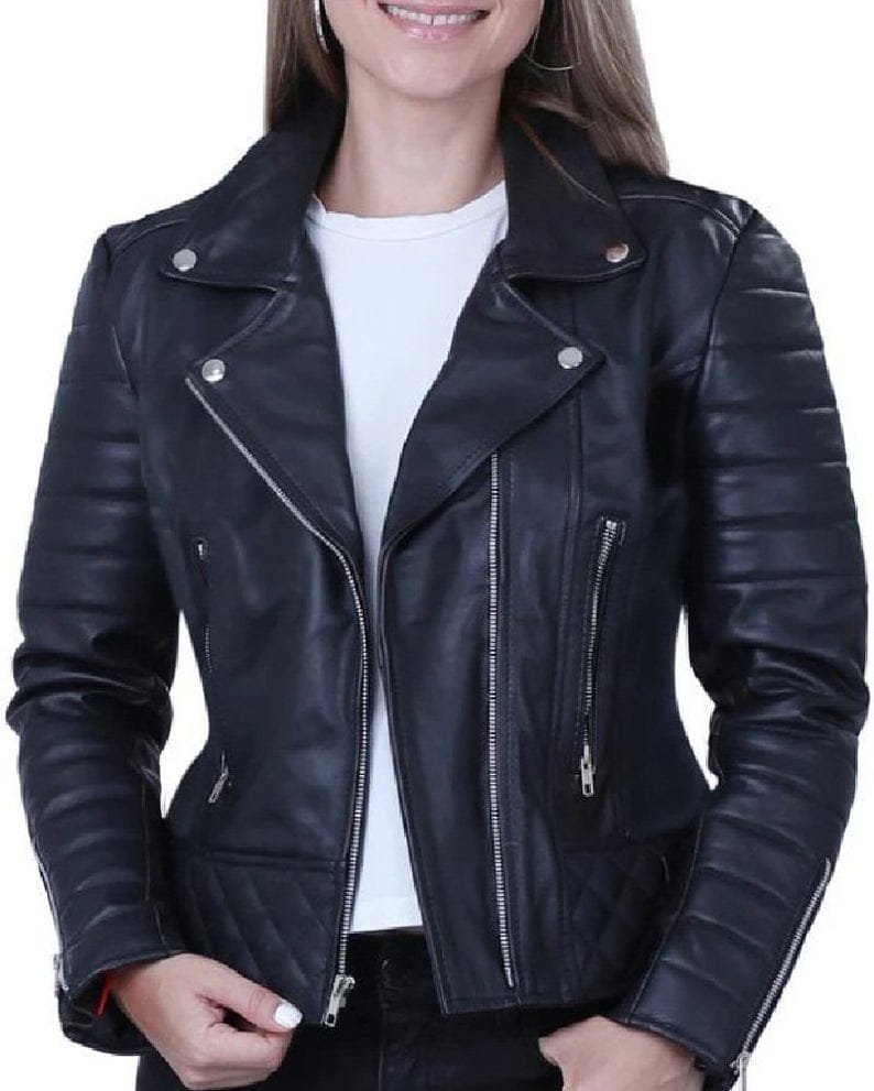 Black Motorcycle Bikers Jacket for Women's Leather Jacket